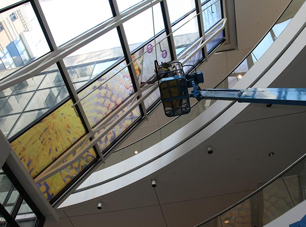 Architectural glass,  digital photography, hand painting, on film