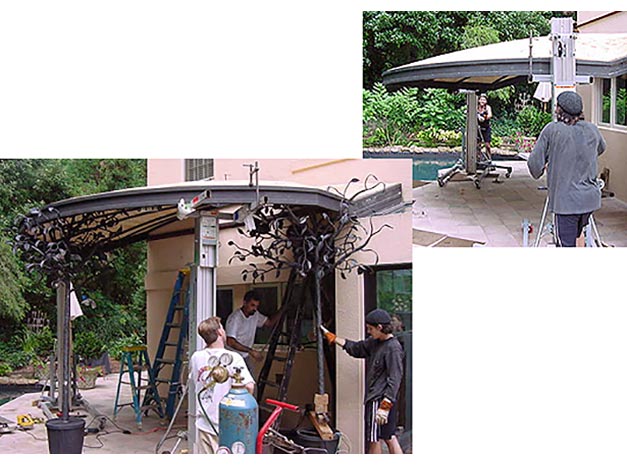 This commission provided an opportunity to work with another Atlanta blacksmith, Corrina Mensoff. Together we created a copper clamshell roof that was supporte by hand-forged steel lemon trees, accented with brass lemons.