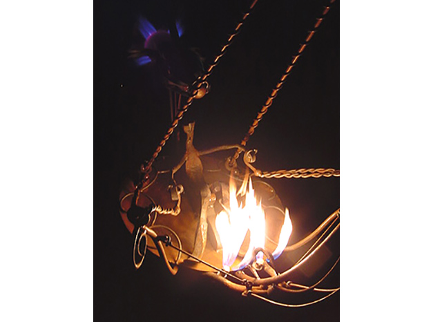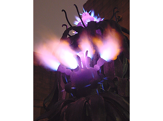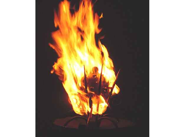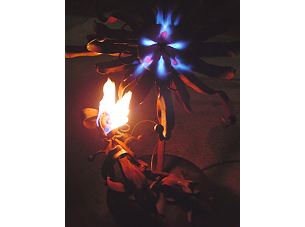 The premise of the fire sculptures is a flower: by day they are at rest and at night they bloom.